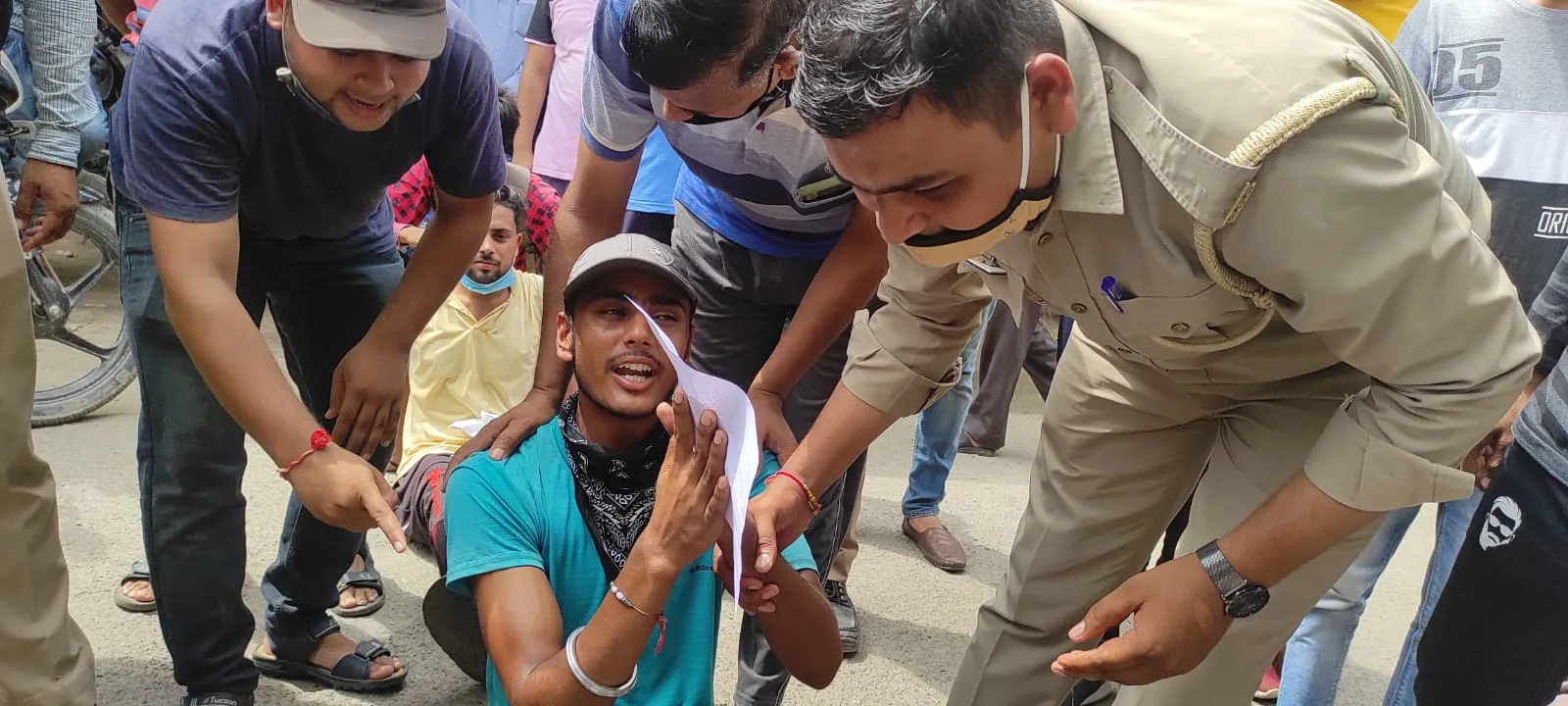 रोड जाम की सूचना पर मौके पर कोतवाली पुलिस पहुंची गई। बिहारीपुर चौकी सनी चौधरी अपनी फोर्स के साथ छात्रों को हटाने में जुटे मगर छात्र किसी भी कीमत पर हटने के लिए तैयार नहीं थे। इसके बाद पुलिस ने सड़क पर बैठे छात्रों का नाम और पता नोट करने लगे। छात्रों का कहना है कि पुलिस ने उन्हें डराने धमकाने की भी कोशिश की कहा, अगर नहीं हटेंगे तो मैं उन पर मुकदमा ठोक देंगे। जिससे उनकी पूरी जिंदगी बर्बाद हो जाएगी।