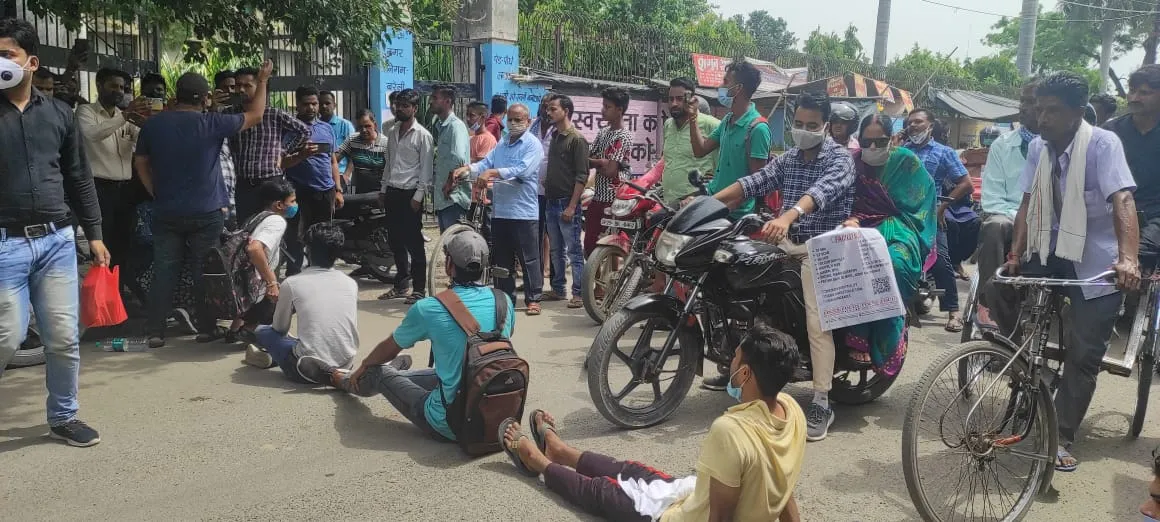 रोड जाम करने वाले छात्रों ने एंबुलेंस को दिया रास्ता