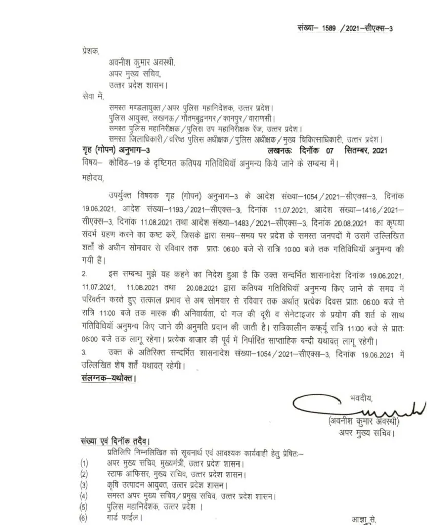 आपको बता दें, प्रदेश में पहले नाइट कर्फ्यू रात 10 बजे से लागू हो जाता था। लेकिन अब नए आदेश में कहा गया है कि यूपी में नाइट कर्फ्यू रात 11 बजे से सुबह 6 बजे तक ही लागू रहेगा।