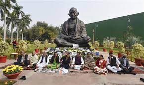 राज्यसभा में नेता प्रतिपक्ष मल्लिकार्जुन खड़गे और सदन में कई विपक्षी नेताओं की बैठक में यह फैसला किया गया। विपक्षी नेता संसद में महात्मा गांधी की प्रतिमा से मार्च निकालकर विजय चौक तक जाएंगे। पिछले 29 नवंबर को आरंभ हुए संसद के शीतकालीन सत्र के पहले दिन राज्यसभा में कांग्रेस और तृणमूल कांग्रेस सहित अन्य विपक्षी दलों के 12 सदस्यों को इस सत्र की शेष अवधि के लिए निलंबित कर दिया गया था।
