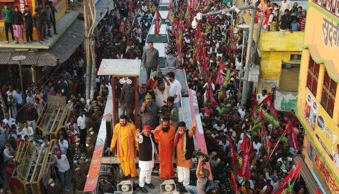 अयोध्या: अखिलेश यादव के रोड शो में उमड़ा जनसैलाब, जगह-जगह हुई फूलों की बारिश