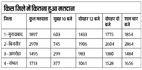 बिजनौर में सपा और भाजपा के बीच कांटे की टक्कर, 12 मतदान केंद्रों पर 96.14 फीसदी मतदान