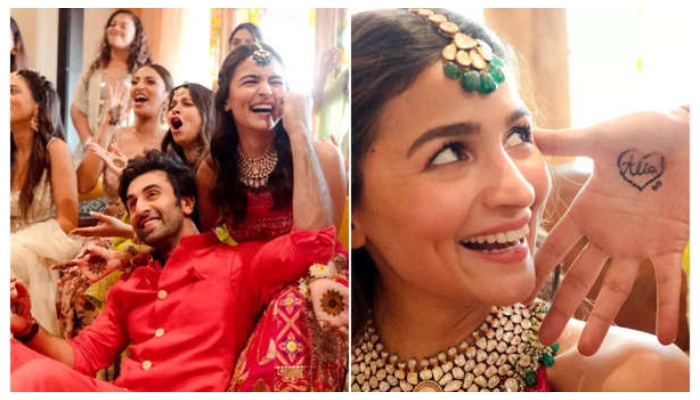 रणबीर ने भी अपने हाथों में मेहंदी से आलिया का नाम लिखवाकर उन्हें खुश कर दिया।