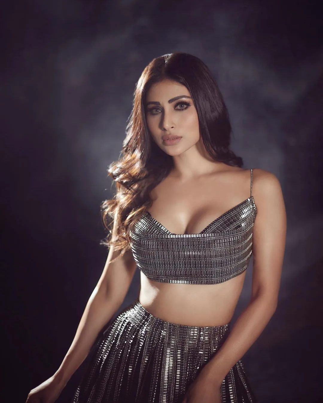 इन फोटो में मौनी ने अपने बालों को खुला रखा है और न्यूड मेकअप बेहद बोल्ड एंड हॉट लग रही है।