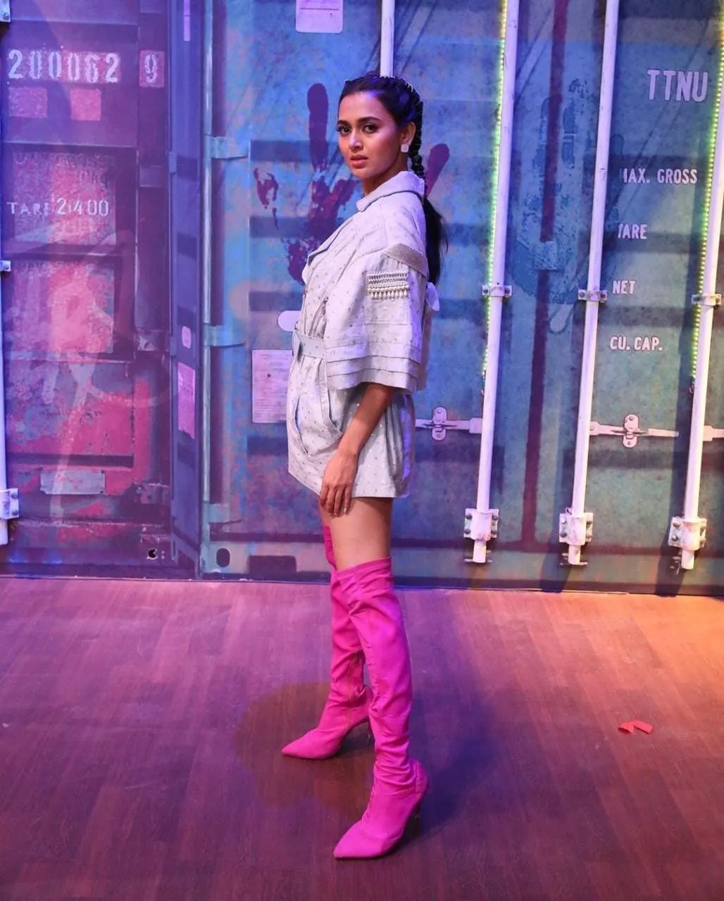 तेजस्वी प्रकाश ने अपनी कुछ तस्वीरें शेयर की हैं। इन तस्वीरों में एक्ट्रेस बेहद ही शॉर्ट ड्रेस पहने हुए नजर आ रही हैं। जिसके साथ उन्होंने पिंक कलर के बूट्स पहन रखे है।