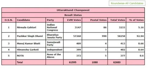 चंपावत उपचुनाव में मुख्यमंत्री पुष्कर सिंह धामी ने तोड़े सारे रिकॉर्ड, 55025 वोटों से जीते