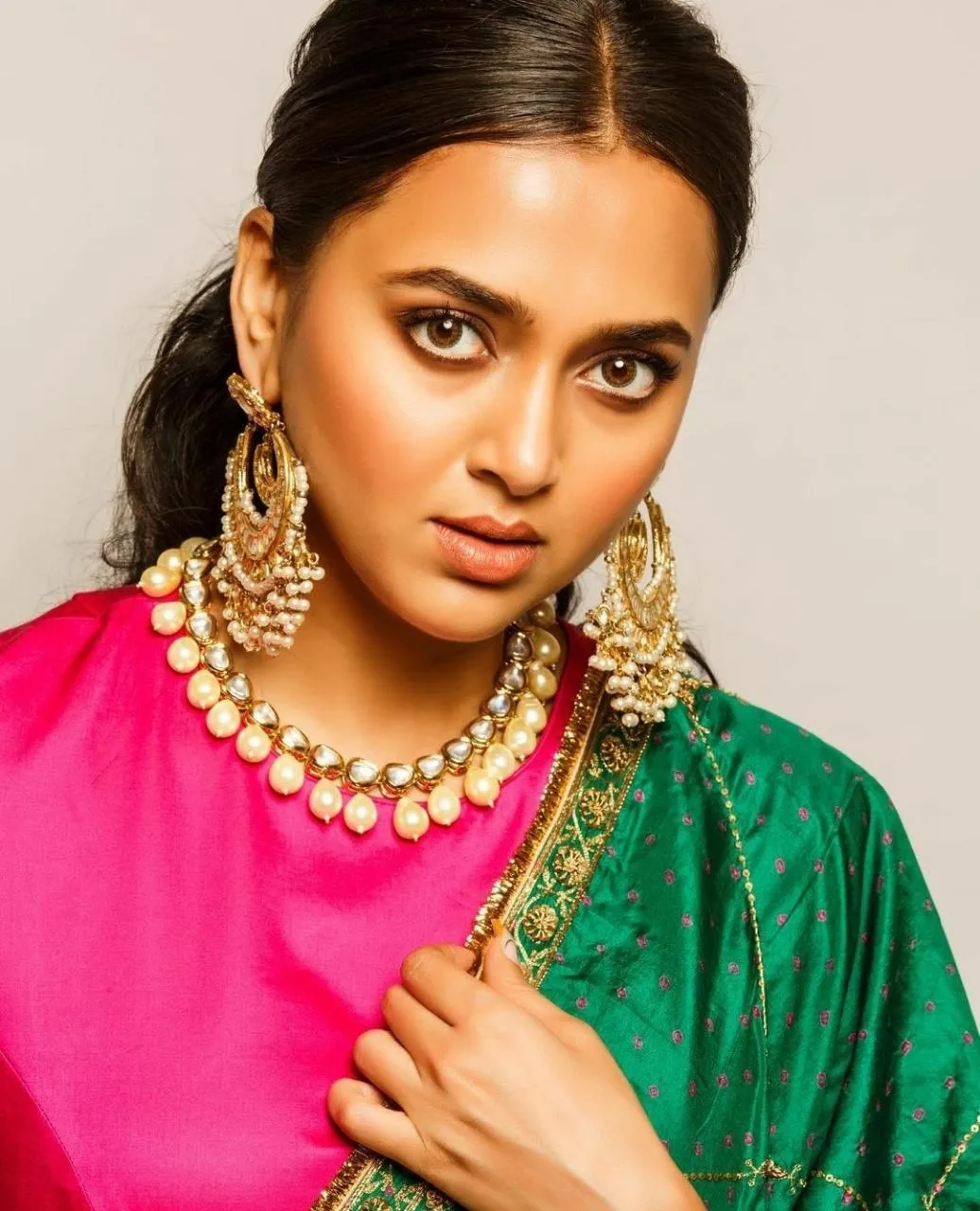 Tejasswi Prakash Photos : ग्रीन साड़ी में खूबसूरत लग रही हैं तेजस्वी प्रकाश, मोती से जड़ा हार और झूमके पहन खूब दिए पोज