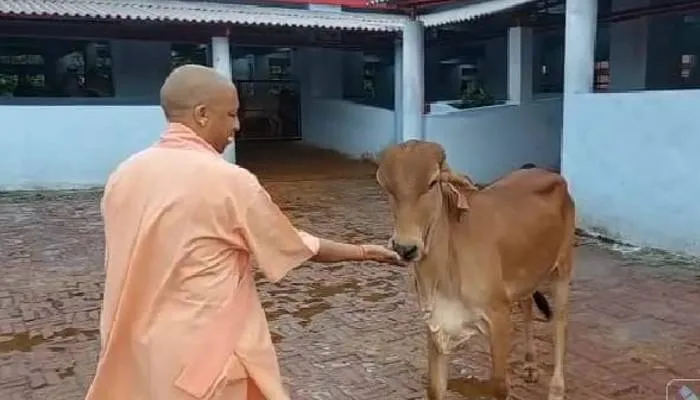 गोरखपुर: गोरखनाथ मंदिर छोड़ने से पहले गोवंशों को दुलारना नहीं भूले सीएम योगी