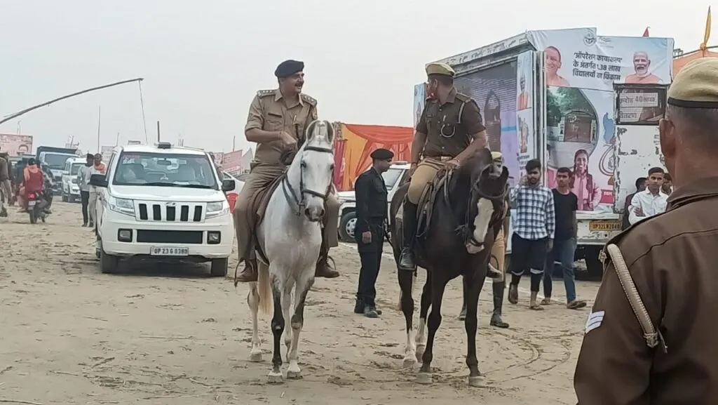 तिगरी गंगा धाम मेले में गश्त करती पुलिस।