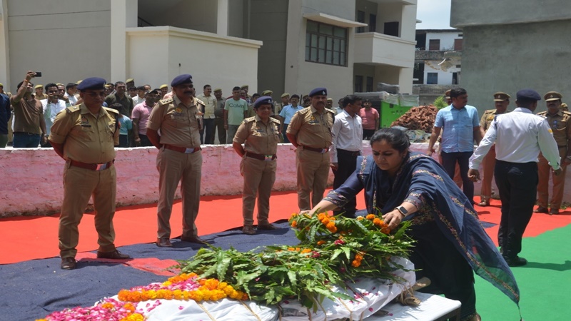 सोमवार को पोस्टमार्टम के बाद शव को पुलिस लाइन लाया गया। जहां डीएम अपूर्वा दुबे, सिद्धार्थ शंकर मीना, एएसपी शशि शेखर, सीओ सफीपुर व सिटी सहित एसडीएम सफीपुर सहित कई थानेदारों व पुलिस कर्मियों ने श्रद्धांजलि अर्पित की। पुलिस की टुकड़ी ने शस्त्र झुका कर सलामी दी। इसके बाद एसपी एएसपी सहित अन्य अफसरों ने पार्थिव शरीर को कंधा देकर पुलिस वाहन तक ले गए। पुलिस वाहन से शव को पैतृक गांव भेजा गया। एसपी ने परिजनों को आर्थिक सहायता के साथ हर संभव मदद का भरोसा दिया।