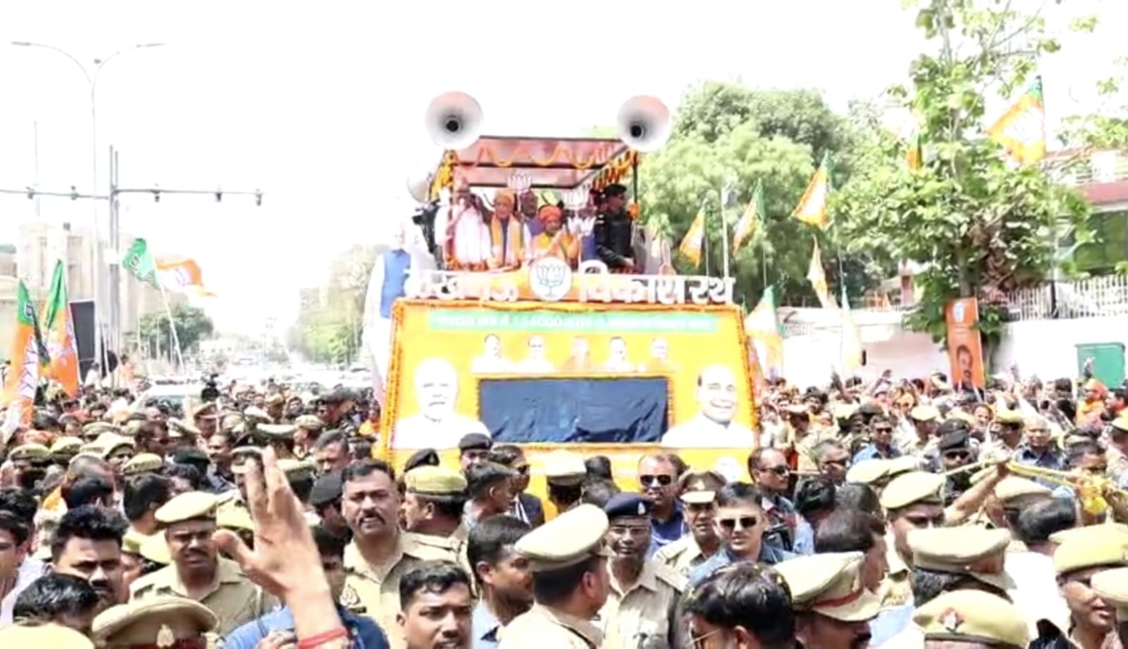 राजनाथ सिंह के नामांकन को लेकर सड़कों पर निकले समर्थक, रथ पर सवार राजनाथ का हो रहा स्वागत