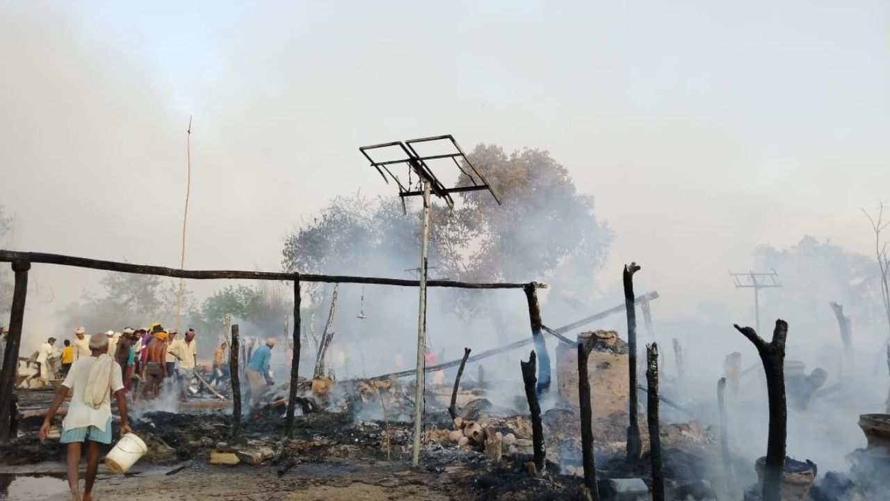 लखीमपुर खीरी: सोलर पैनल के शार्ट सर्किट से 40 घर जलकर राख, लाखों का नुकसान