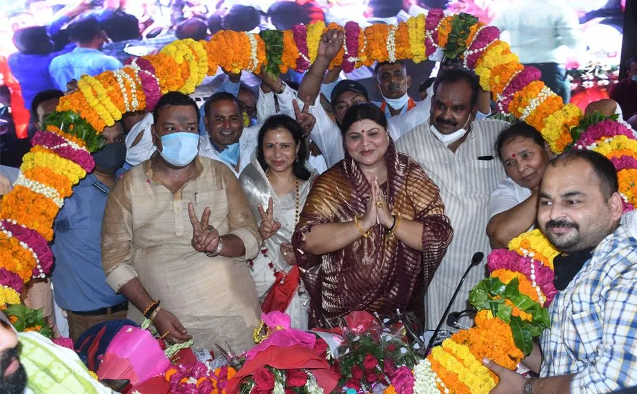 शपथ के बाद जिला पंचायत कार्यालय पहुंची रश्मि पटेल