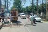 कलेक्ट्रेट पर बेरीकेडिंग करते कर्मचारी