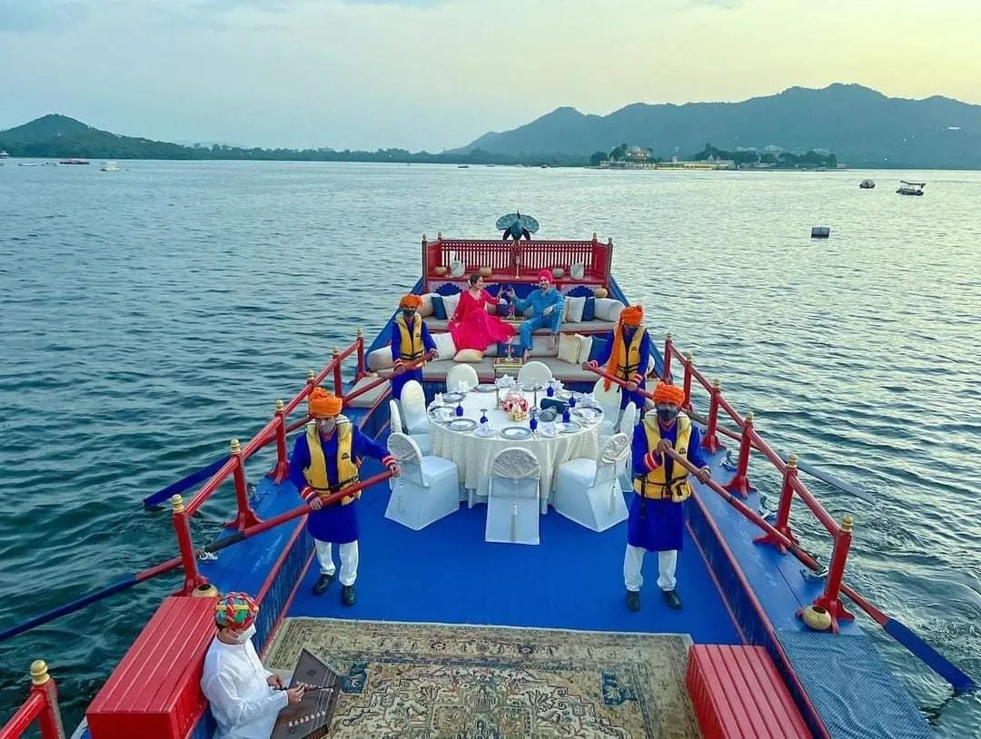 रोहनप्रीत और नेहा ने अपनी शादी की पहली एनिवर्सरी पर कैंडल लाइट डिनर किया। दोनों रॉयल सेटिंग में नदी में समय बिताते दिख रहे हैं। उनकी इस बोट को व्हाइट और ब्लू कलर में सजाया गया है।