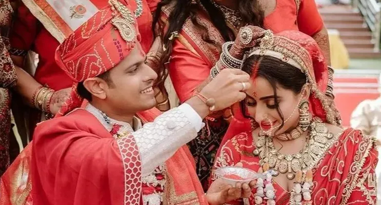 ‘गुम है किसी के के प्यार में’ फेम नील भट्ट अपनी को-स्टार ऐश्वर्या शर्मा के साथ 30 नवंबर 2021 को शादी के बंधन में बंधे थे। दोनों की शादी उज्जैन में हुई थी। दोनों की शादी की तस्वीरें सोशल मीडिया पर जमकर वायरल हुई थीं। अपने स्पेशल डे पर, जहां एक्ट्रेस ने पारंपरिक लाल बंधनी लहंगा पहना था, वहीं नील ने एक सफेद धोती और कुर्ते के साथ एक दोशाला लिया था और सिर पर पगड़ी बांध रखी थी।