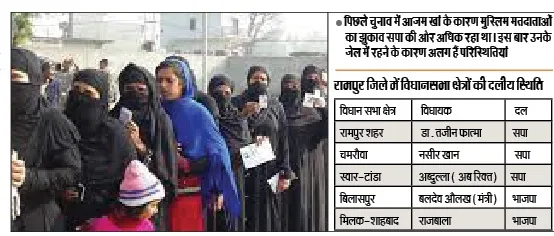 कहां जाएगा मुस्लिम वोट, अहम सवाल : विधानसभा चुनाव से पहले सबसे अहम सवाल है कि जिले की 50.57 फीसदी आबादी वाला मुस्लिम वोट बैंक किसके पाले में जाएगा या फिर एक बार वोटों में बिखराव होगा और उसका लाभ भाजपा ले जाएगी। पिछले विधानसभा चुनाव के दौरान मुस्लिम मतों का विभाजन तो हुआ था, लेकिन इसका कोई खास असर नजर नहीं आया था। जिले में सपा के कद्दावर नेता आजम खां के प्रभाव में मुस्लिम वोट का झुकाव सपा की ओर ज्यादा रहा था। इस बार आजम खां जेल में हैं।