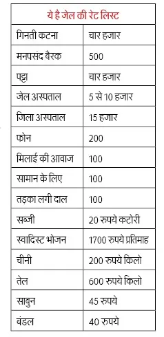 मंडलीय जेल : सोने से खाने तक के फिक्स हैं रेट