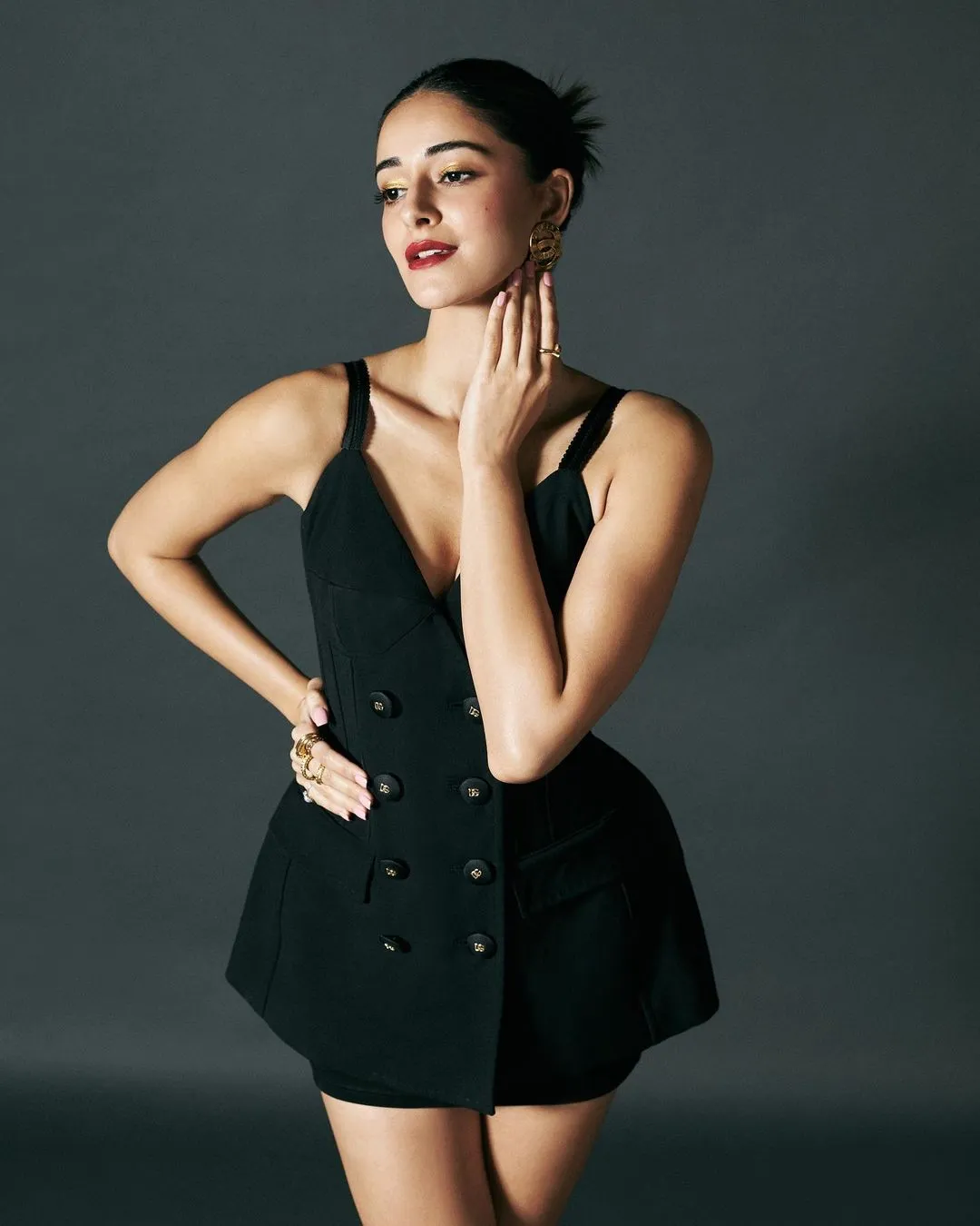 उन्होंने अपने फोटोशूट की तस्वीरें शेयर की हैं जो पोस्ट होते ही वायरल हो गई हैं। इन तस्वीरों में अनन्या ने ब्लैक शॉर्ट ड्रेस पहनी है और बन बनाया हुआ है।