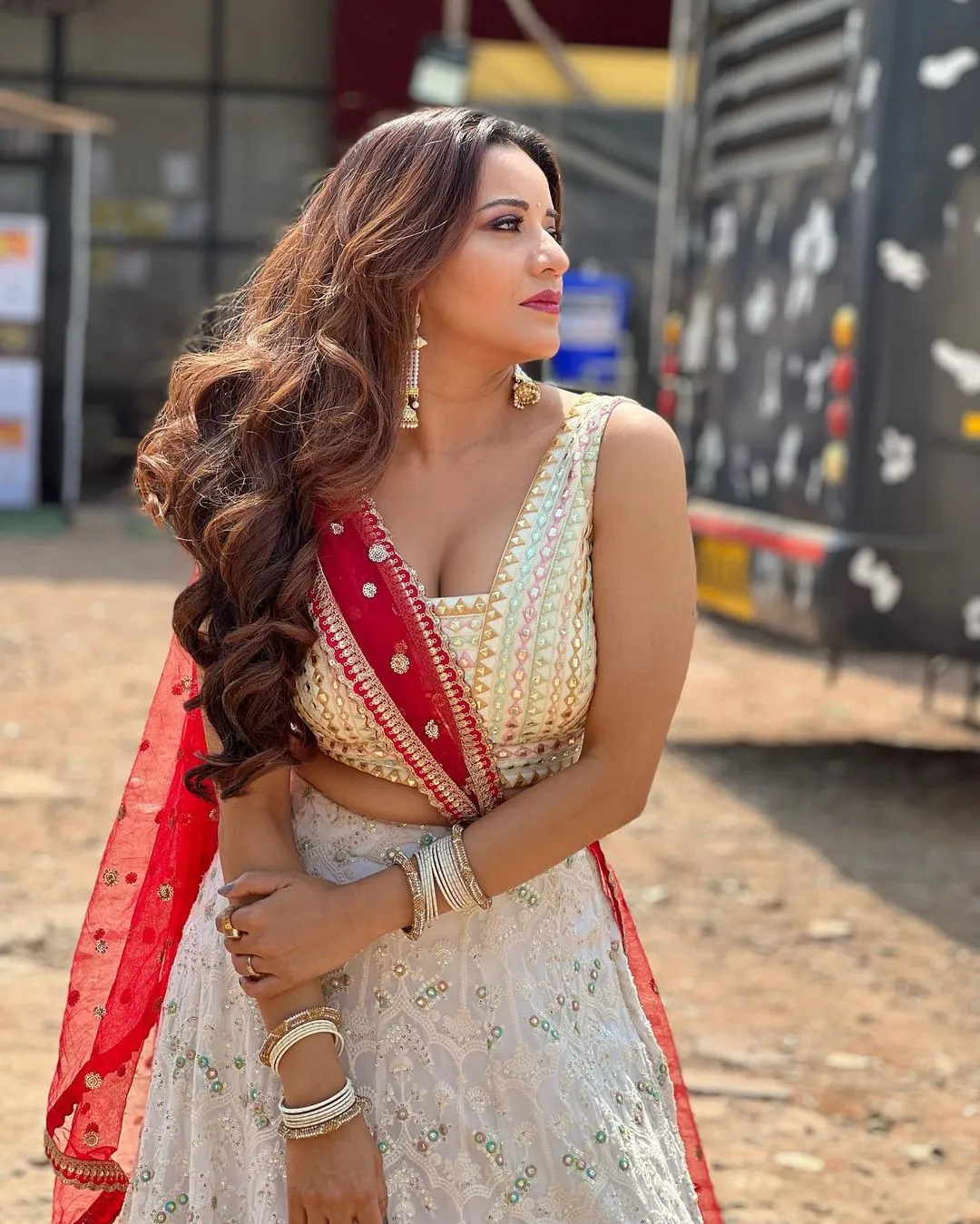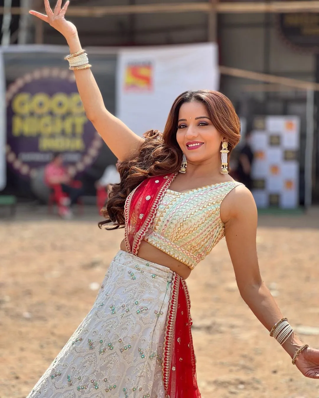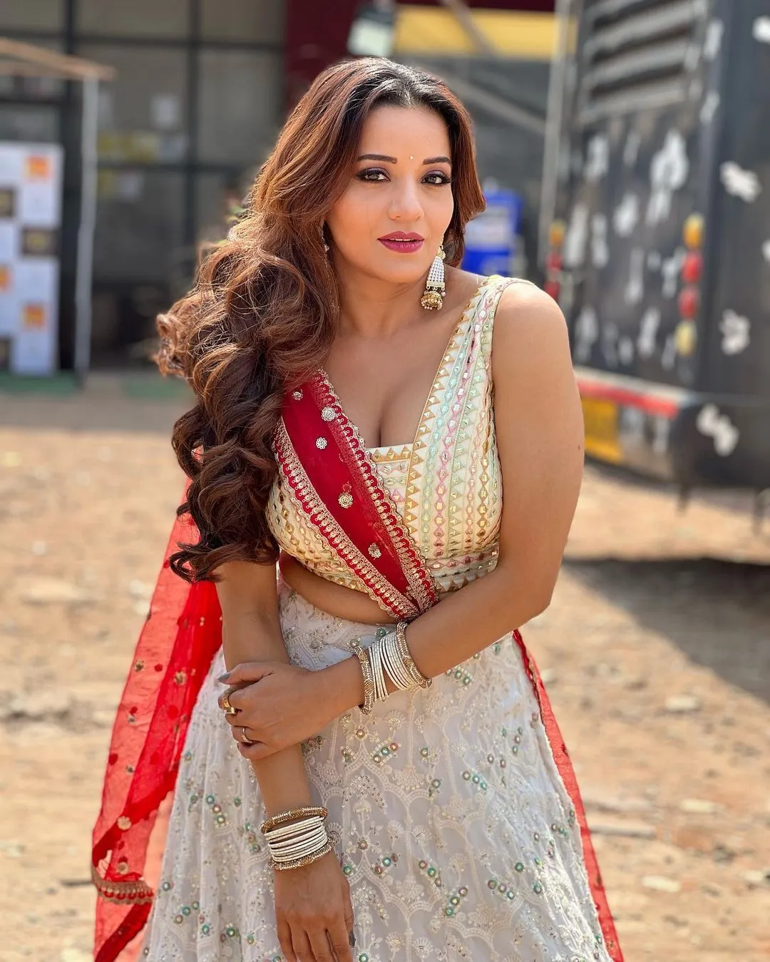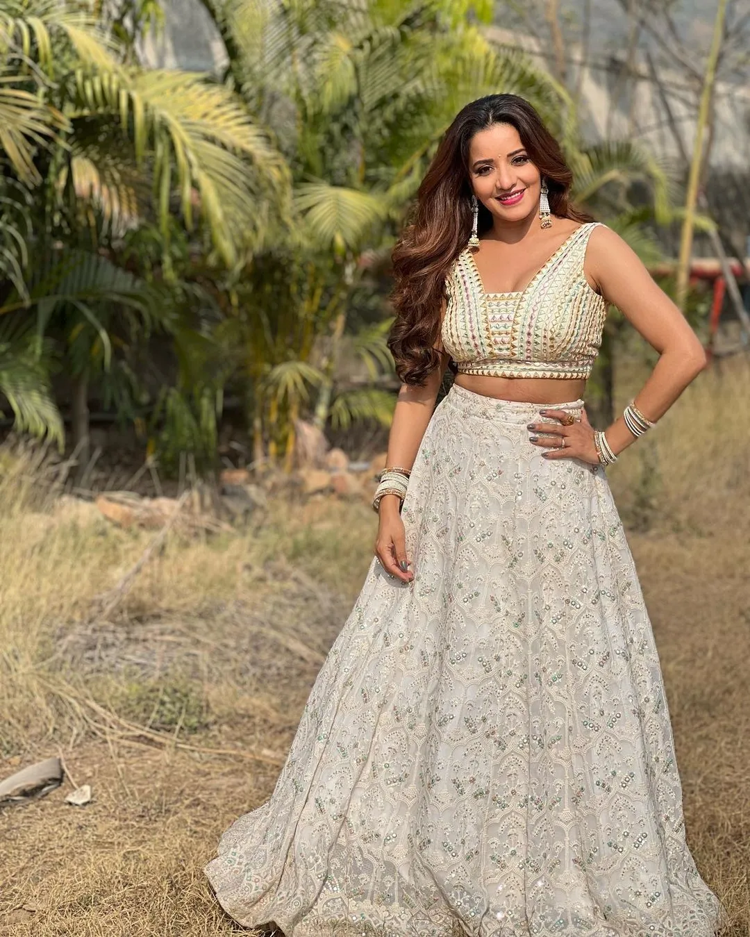 माथे पर बिंदी, चूड़ी, झुमके और डीप नेक चोली के साथ लहंगा पहनकर मोनालिसा अलग-अलग पोज देती दिखीं, जिसमें उन्हें देखकर पता चल रहा है कि खुद को लेकर कितनी कॉन्फिडेंट हैं।
