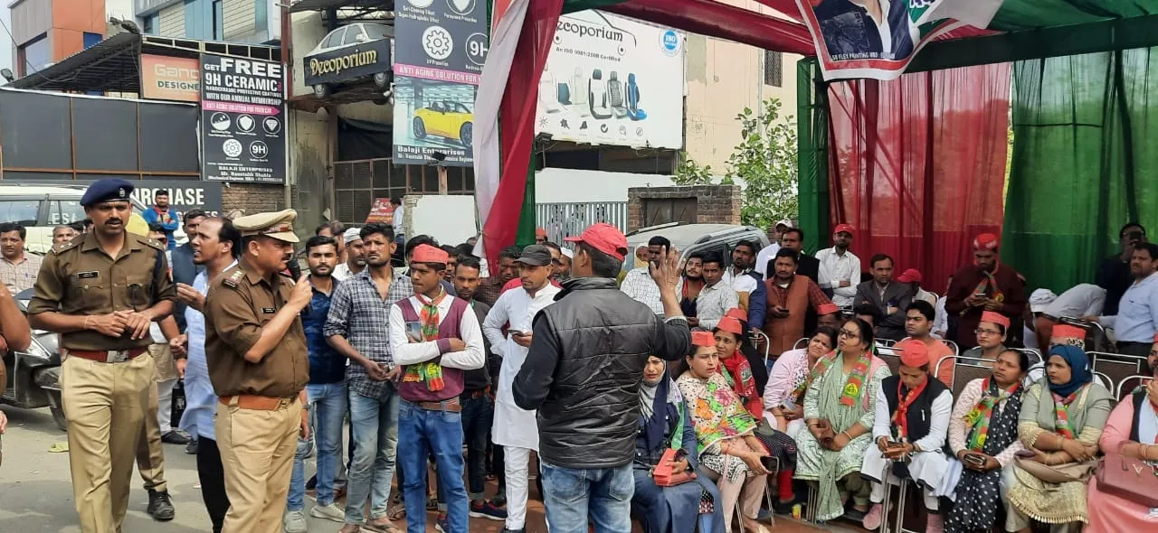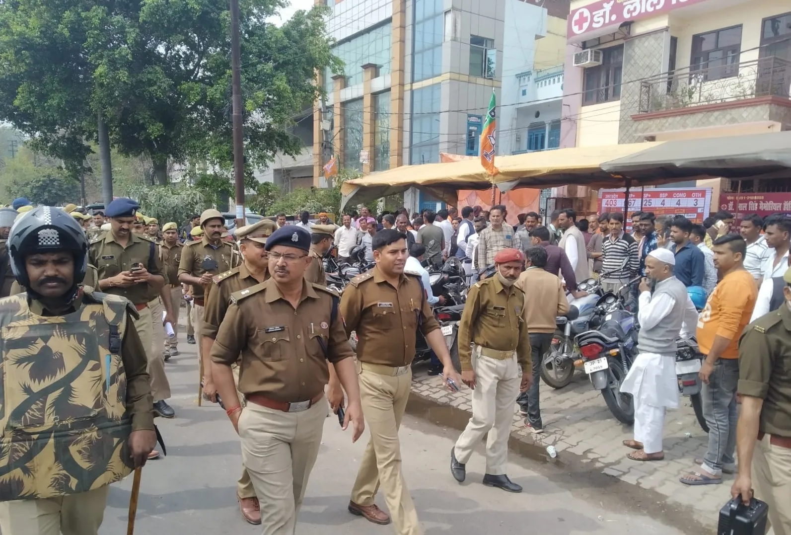 - अमरोहा जिले में मंडी समिति में पर पुलिस बल तैनात किया गया है।