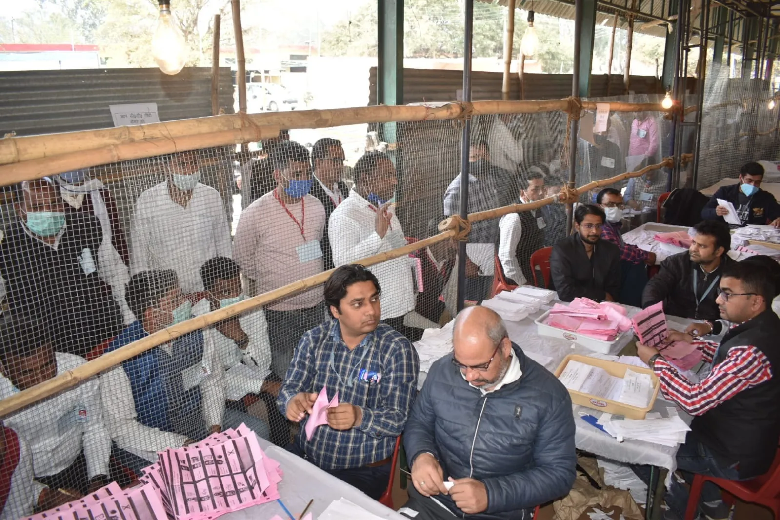 - बिजनौर में मतगणना स्थलों पर काउटिंग करते कर्मचारी।