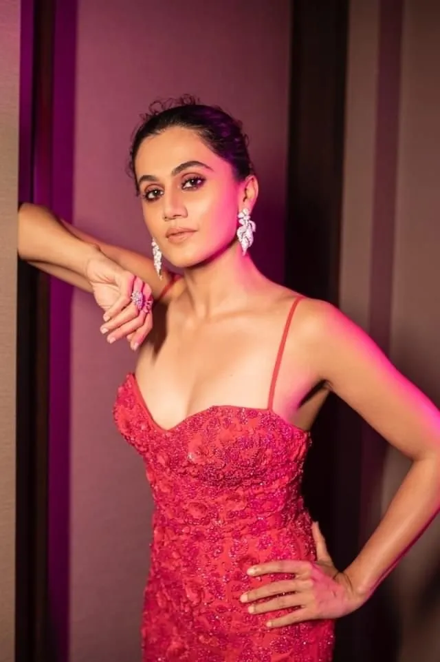 Taapsee Pannu Photos : तापसी पन्नू ने रेड डीपनेक गाउन में फ्लॉन्ट किया फिगर, ग्लैमरस अदाओं से इंटरनेट का बढ़ाया तापमान
