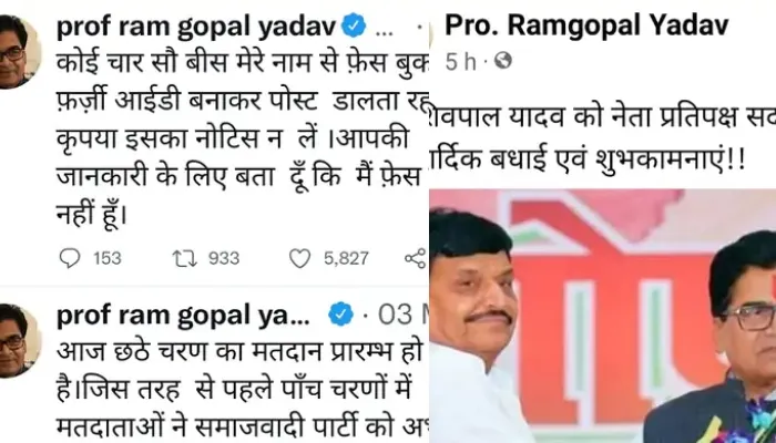 इटावा: रामगोपाल यादव का बना फेक फेसबुक अकाउंट, ट्वीट कर दी जानकारी