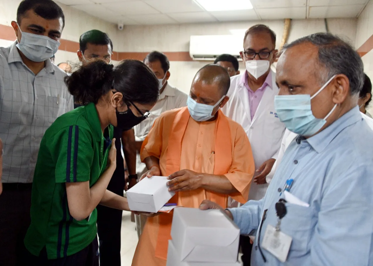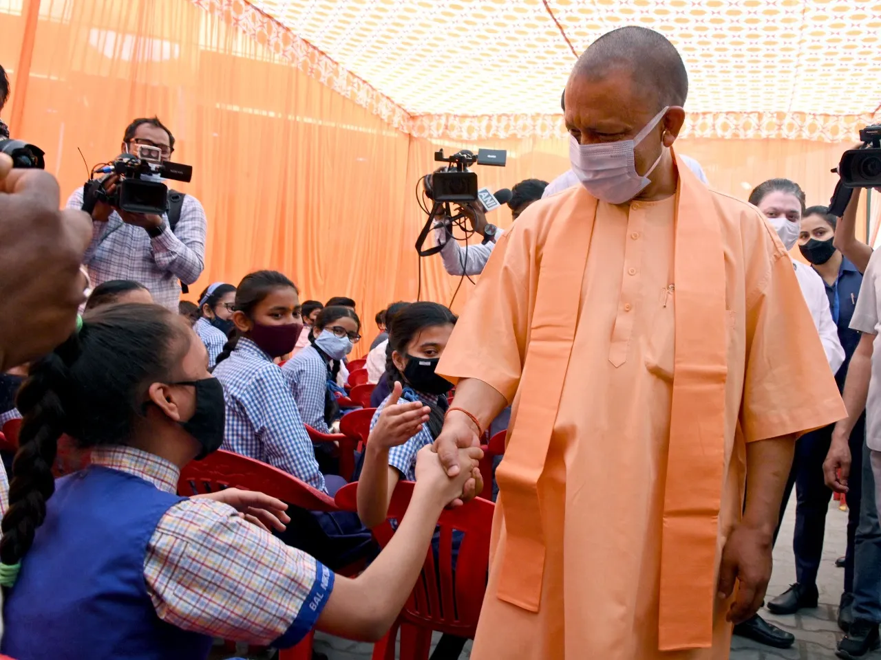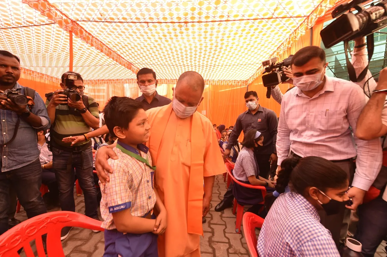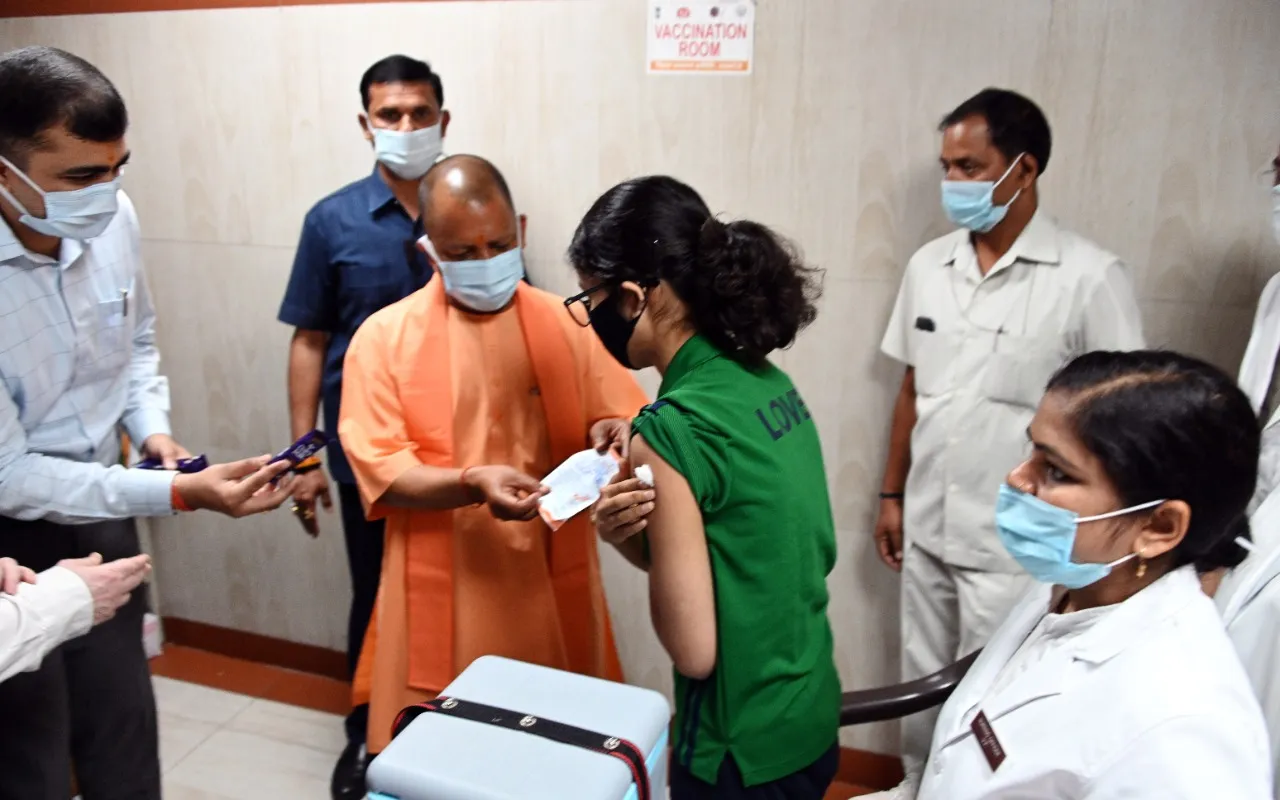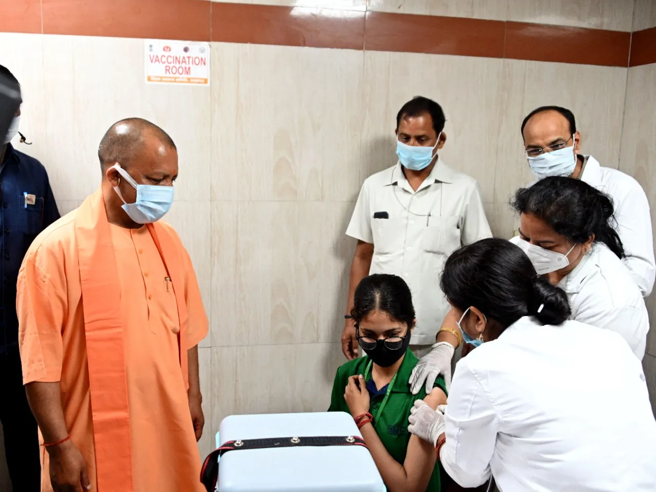 कार्यवाहक सीएम योगी ने कोरोना रोधी टीकाकरण केंद्र का किया निरीक्षण,बच्चों से की बात