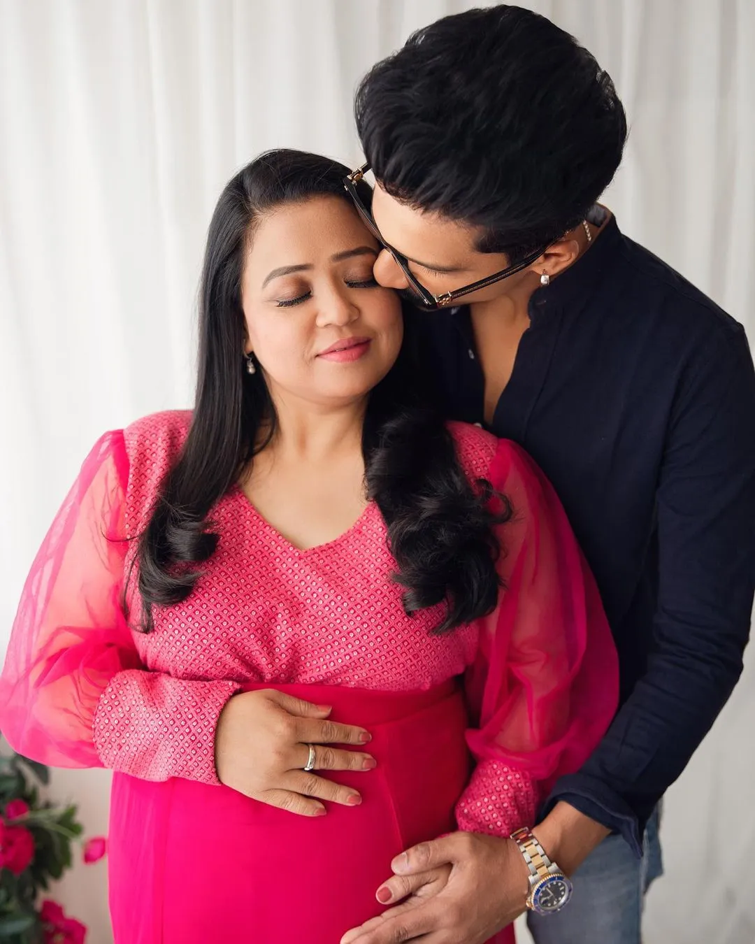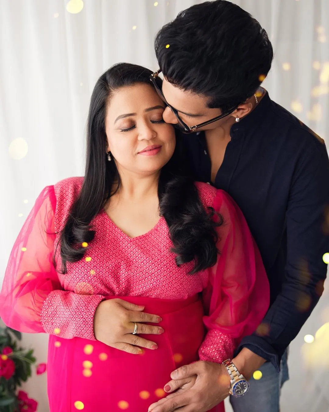 तस्वीरों में वो अपना बेबी बंप को फ्लॉन्ट करते हुए नजर आ रही हैं और अपने पति हर्ष के साथ पोज़ देती दिख रही हैं।