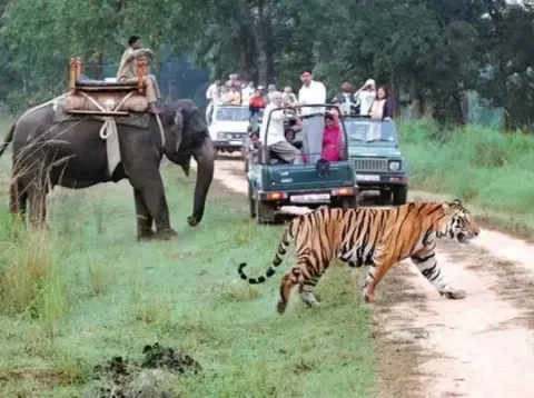 जिम कार्बेट पार्क में कुछ इस तरह करते हैं पर्यटक वन्यजीवों के दीदार।