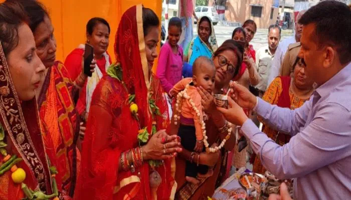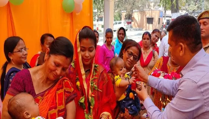 बहराइच: पोषण पखवाड़ा के तहत कलेक्ट्रेट परिसर में आयोजित की गई गोद भराई की रस्म