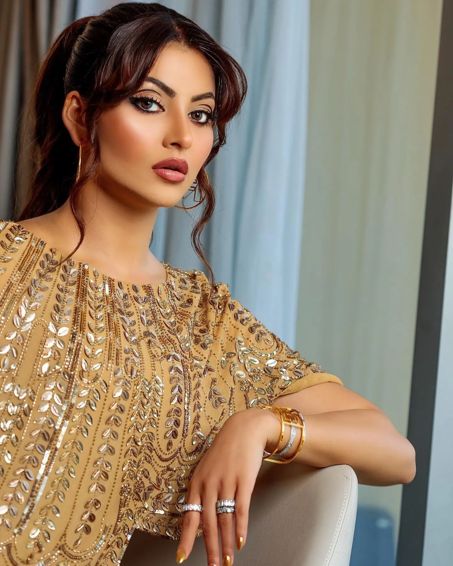 उर्वशी ने बालों को पोनीटेल बनाया है और ग्लैमरस मेकअप से अपने लुक को कम्पलीट किया।