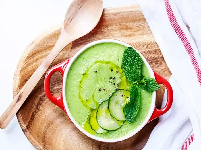 खीरा सूप- खीरे से बना सूप आपके रात के भोजन का सर्वोत्तम आहार हो सकता है। इससे आपको वजन कम करने में भी मदद मिलती है और पेट भरा हुआ रहता है। इसके सेवन से आपको फिट और स्वस्थ रहने में मदद मिलती है। इसके लिए आप खीरा को उबाल लें और टमाटर सूप तैयार कर उसमें मिला लीजिए। फिर अच्छे से दोनों को मिक्स करके इसमें धनिया, काली मिर्च और जीरा पाउडर डालकर अच्छे से पकाएं। जब ये अच्छी तरह पक जाए तो इसे सर्व करें।