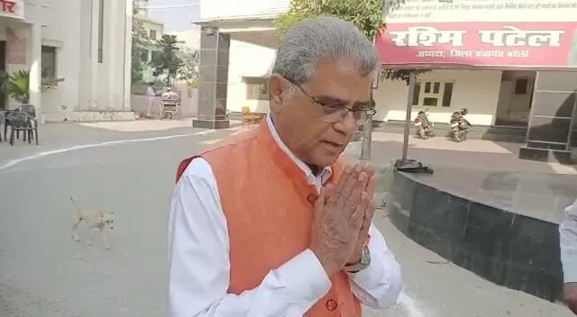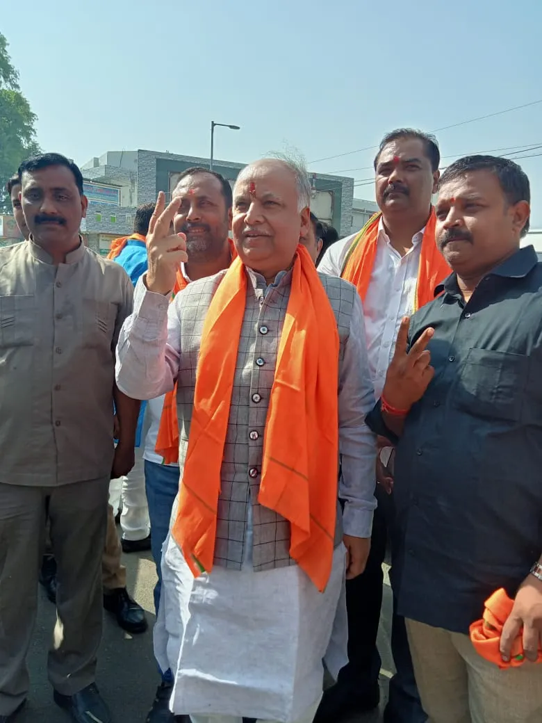 नगर निगम में मतदान करने के उपरांत बाहर निकलते पूर्व उपमुख्यमंत्री डॉ दिनेश शर्मा