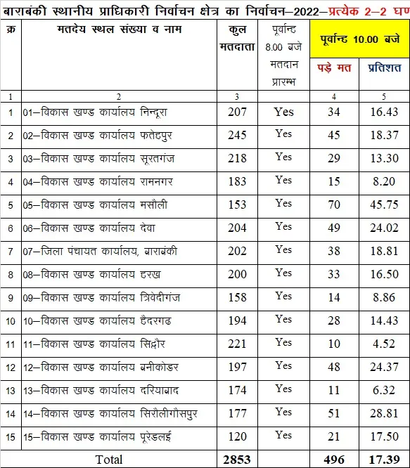 बाराबंकी में 10 बजे तक मतदान