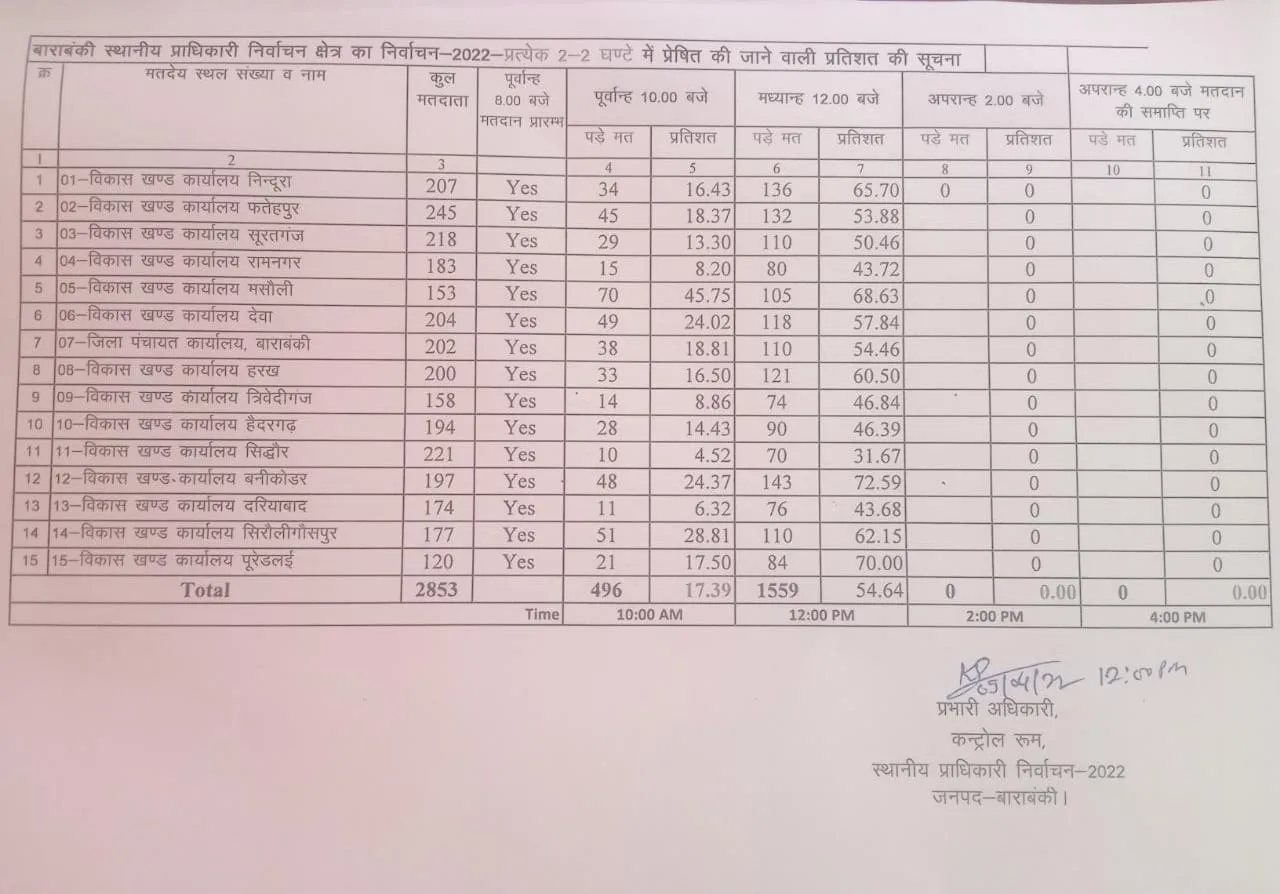 बाराबंकी में 12 बजे तक 54.64% मतदान