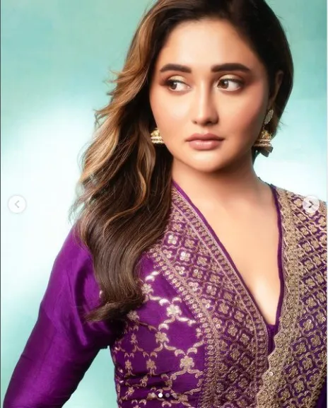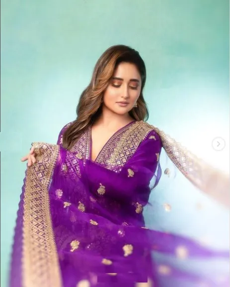 गोल्डन एंब्रॉयडरी वाला पर्पल सूट में रश्मि देसाई बहुत खूबसूरत लग रही हैं। इन ताजा तस्वीरों में अदाकारा ने शरारा सूट वीयर किया है।