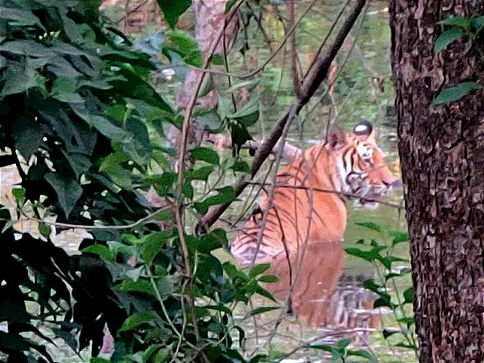इसके बाद थोड़ी आगे बंधा पर एक बाघ बैठा दिखा। जिसका चित्र लोगों ने कैद किया। जंगल से बहने वाले नाले का मनोरम दृश्य लोगों को अपनी ओर आकर्षित किया। गेरुआ नदी में विचरण कर रहे घड़ियाल भी लोगों की पसंद बने। दो दिन से जंगल का भ्रमण कर रहे लोगों को बाघ दिखने पर सभी अपने को रोमांचित महसूस कर रहे हैं।