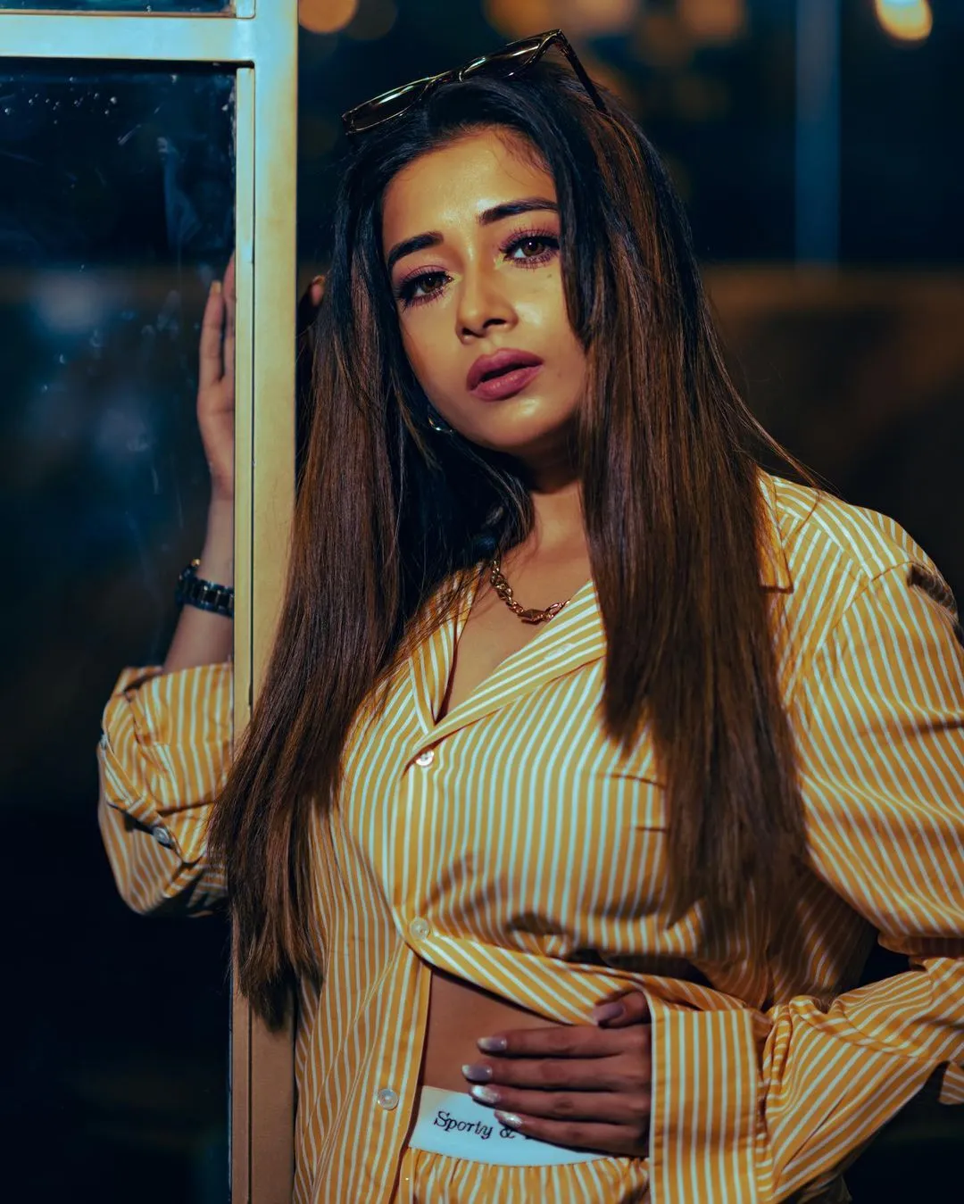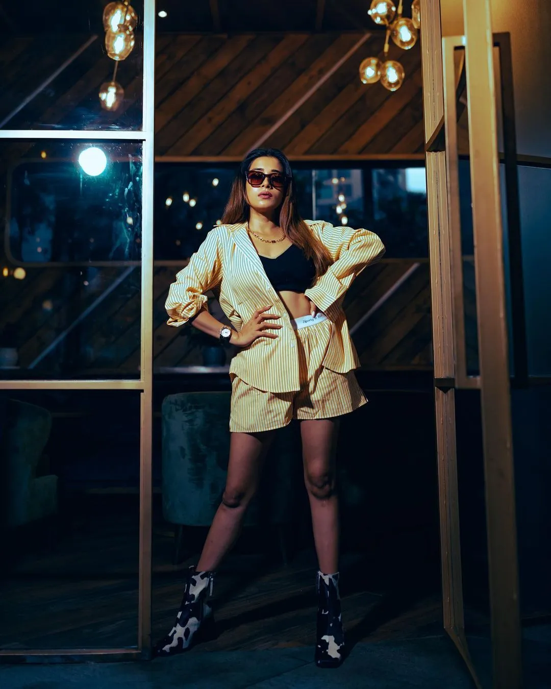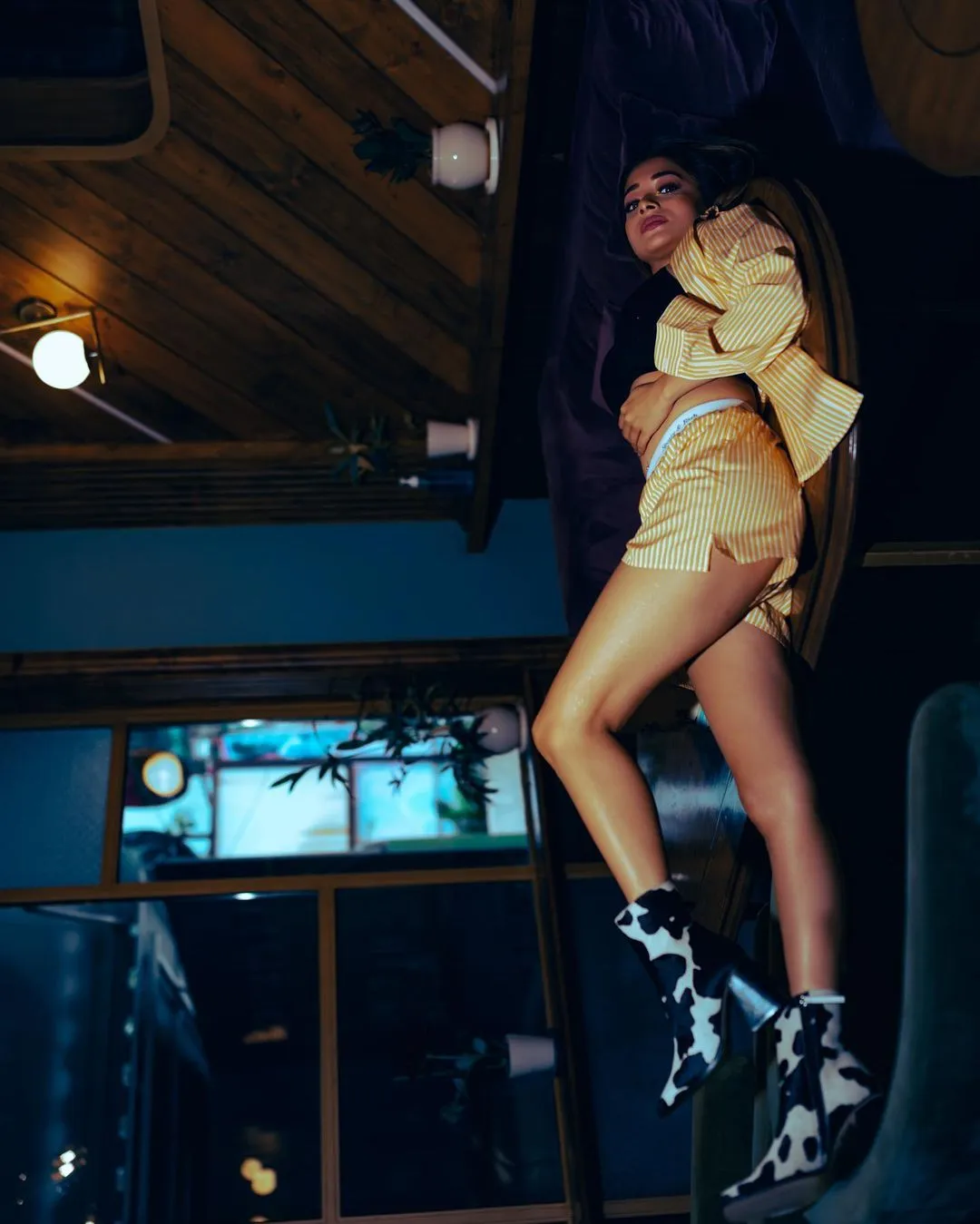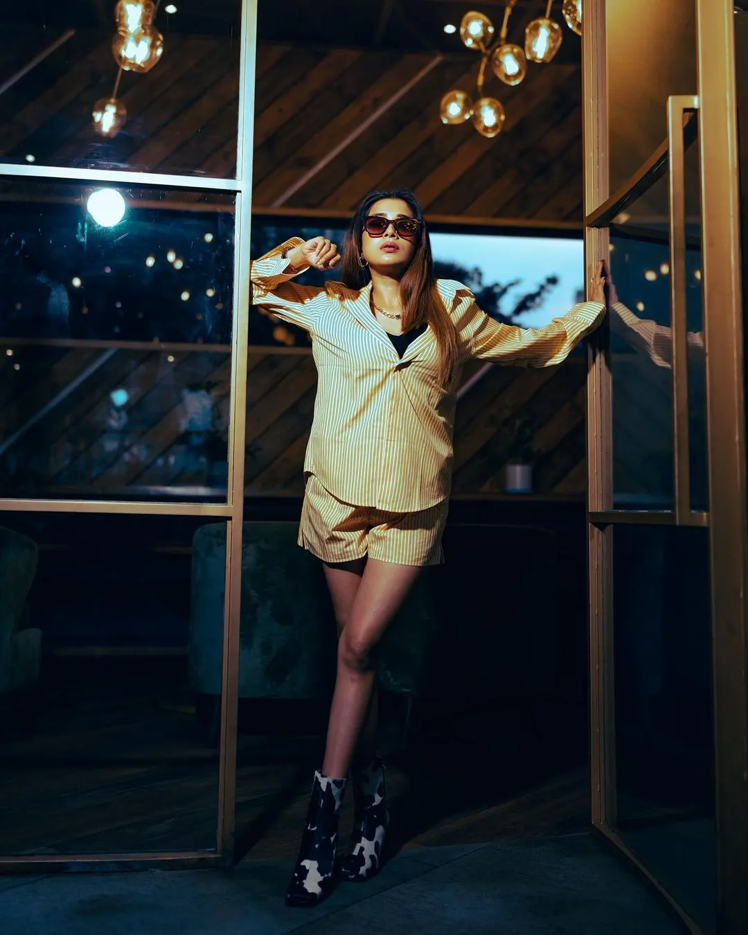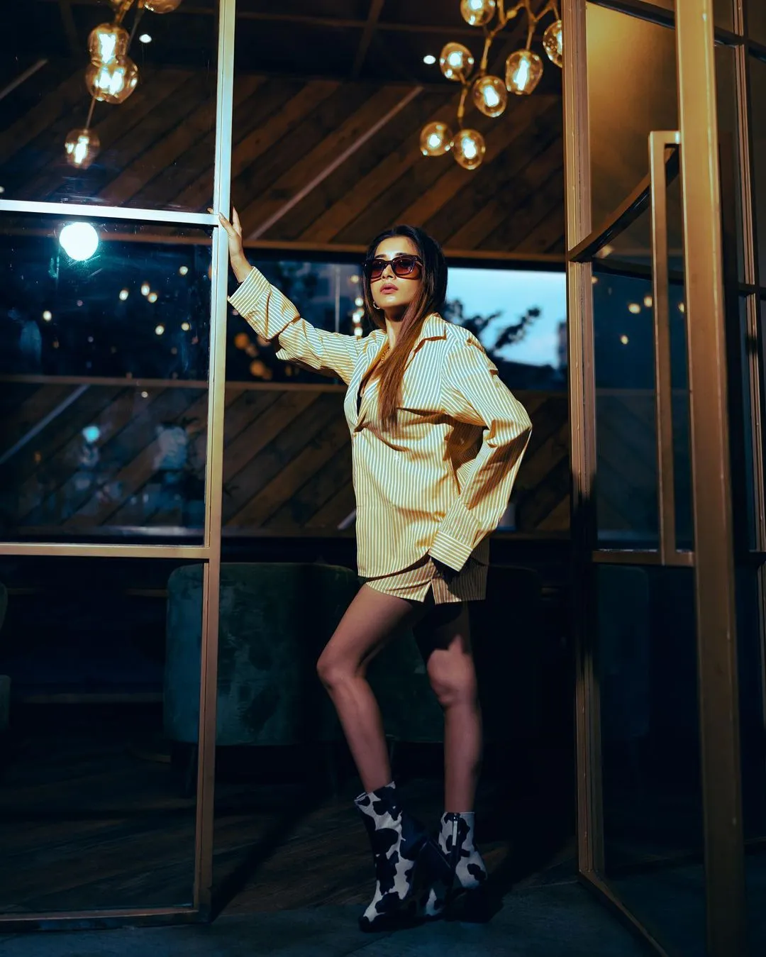 टीना दत्ता को इन तस्वीरों में पीले रंग के शॉर्ट आउफिट में देखा जा सकता है। उन्होंने व्हाइट स्ट्रिप्स वाली पीली ओवरसाइज्ड शर्ट पहने हुए हैं।