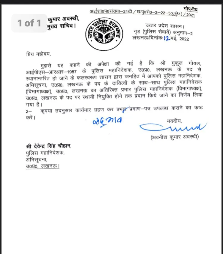 गृह विभाग के अपर मुख्य सचिव अवनीश कुमार अवस्थी ने बृहस्पतिवार को जारी एक आदेश में बताया कि वर्ष 1988 बैच के भारतीय पुलिस सेवा के अधिकारी देवेंद्र सिंह चौहान को अतिरिक्त प्रभार के रूप में प्रदेश का नया पुलिस महानिदेशक नियुक्त किया गया है। चौहान मुकुल गोयल का स्थान लेंगे जिन्हें बुधवार को कर्तव्य के प्रति लापरवाही के आरोप में हटाकर महानिदेशक (नागरिक सुरक्षा) के पद पर भेजा गया था।