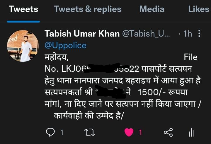 बहराइच: पासपोर्ट सत्यापन के लिए मांगी गई घूस, पीड़ित ने ट्वीट कर यूपी पुलिस से की शिकायत