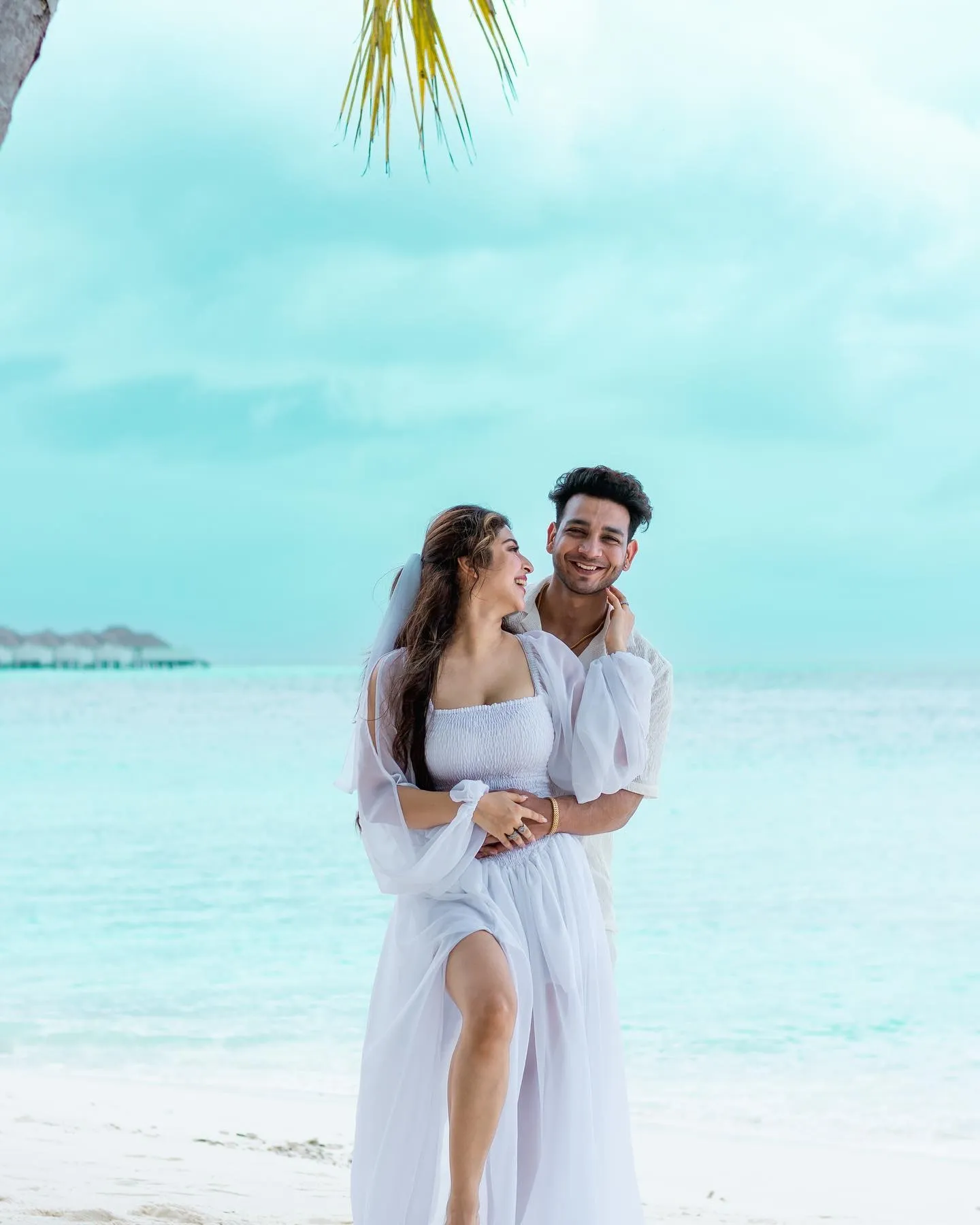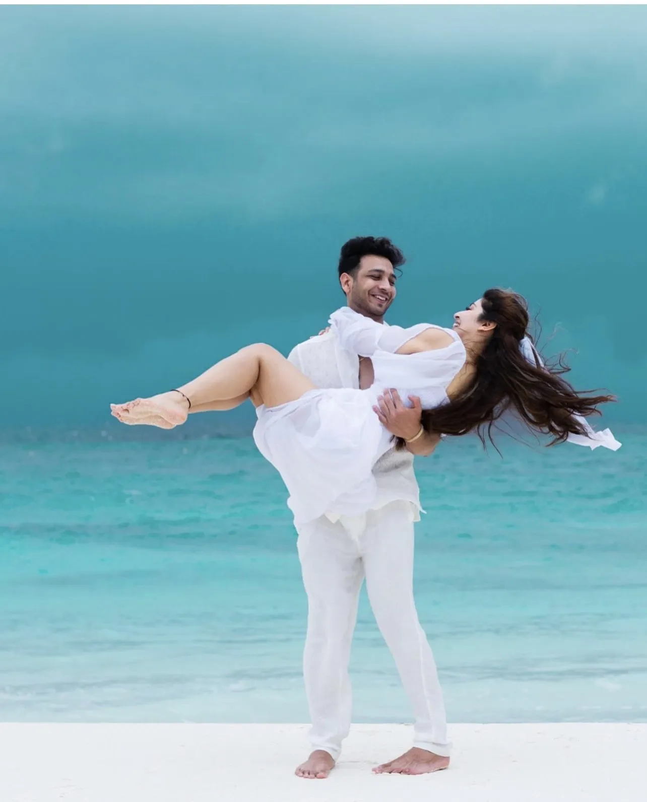 चौथी तस्वीर में विकास सोनारिका भदोरिया को अपने घुटने पर बैठकर शादी के लिए प्रपोज कर रहे हैं और अंत में वह एक्ट्रेस को गोद में उठाते हुए नजर आ रहे हैं।