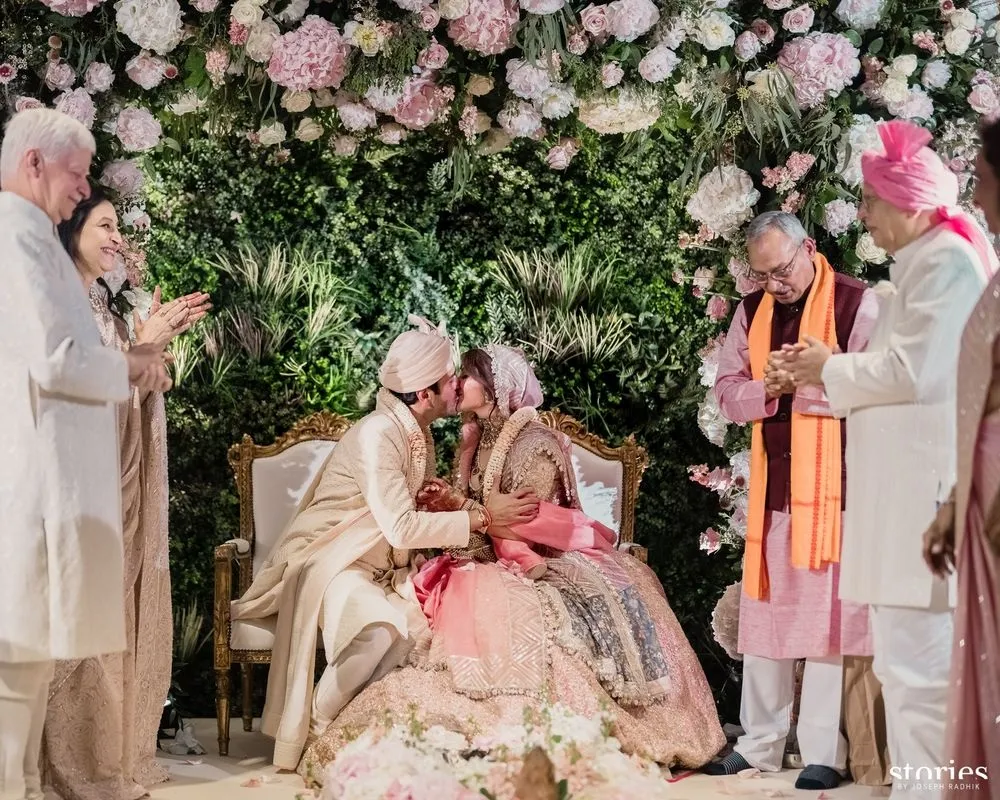 इन तस्वीरों में दूल्हा- दुल्हन बेहद प्यारे लग रहे हैं। इस खास दिन के लिए ब्राइड और ग्रूम ने पेस्टल शेड के आउटफिट को चुना।