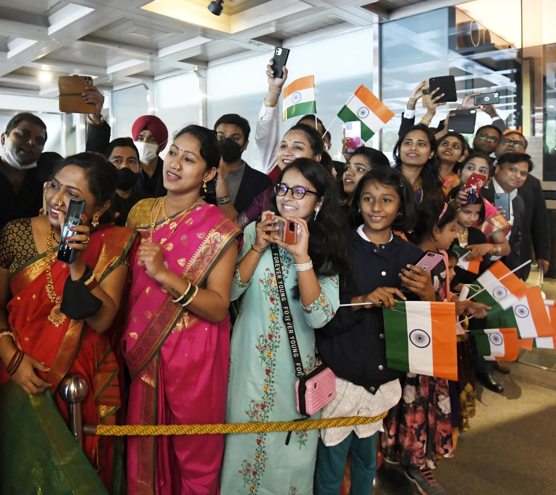 टोक्यो में पीएम मोदी की फोटो लेने के लिए भारतीय कतार में खड़े रहें।