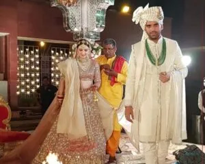 उनके मंच पर पहुंचने के कुछ देर बाद ही जया भारद्वाज भी दुल्हन के लिबास में नजर आईं। इसके बाद जयमाल की रस्मअदायगी पूरी की गई। इसके बाद दोनों ने सात फेरे लिए। फिर जया की मांग में सिंदूर भरा। बारात में उनकी भाई किक्रेटर राहुल राहुल ने जमकर डांस किया।
