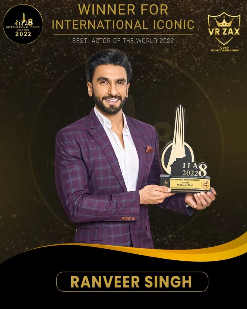 रणवीर सिंह ने वर्ल्ड 2022 में सर्वश्रेष्ठ अभिनेता के लिए सीजन 8 इंटरनेशनल आइकॉनिक अवार्ड जीता