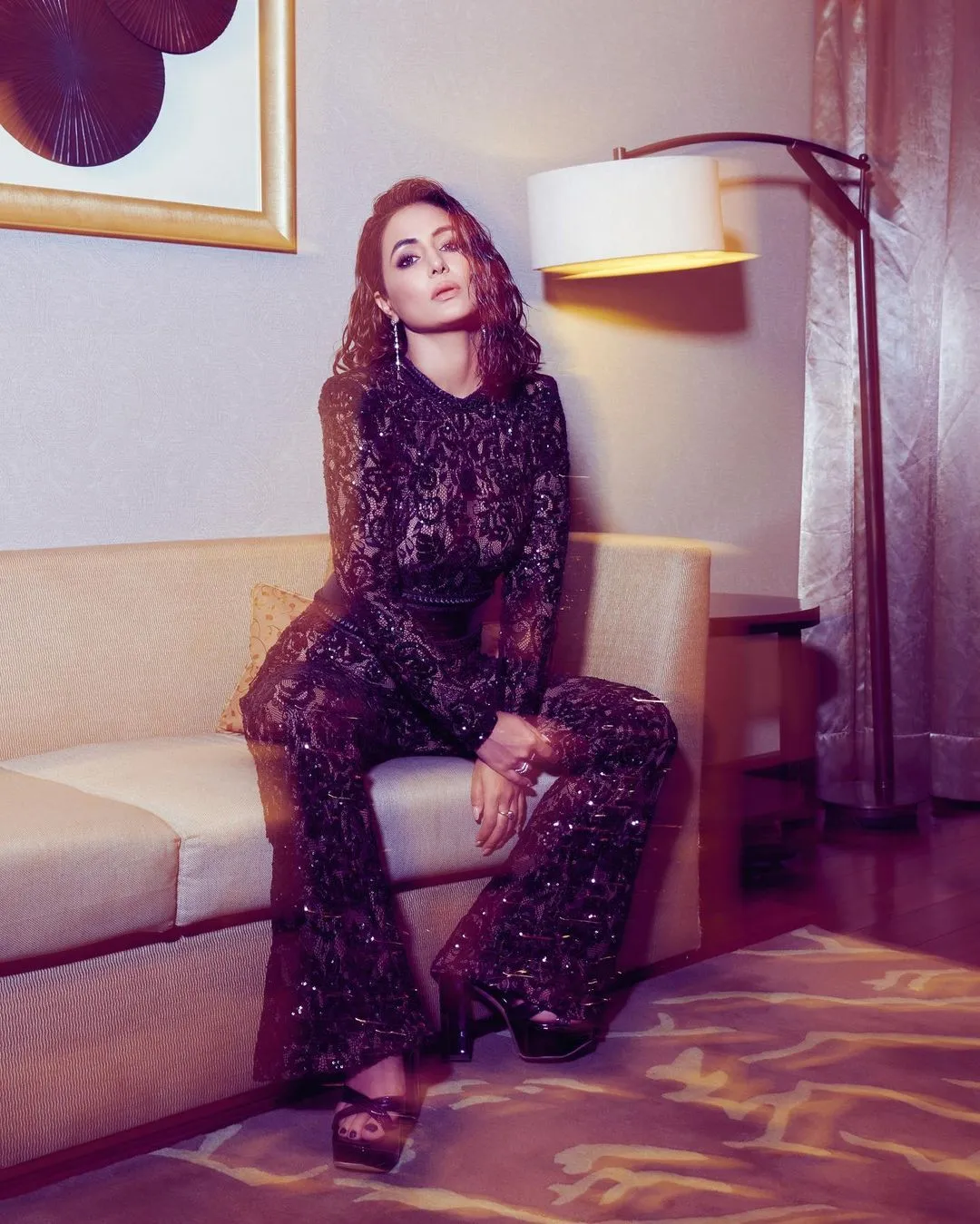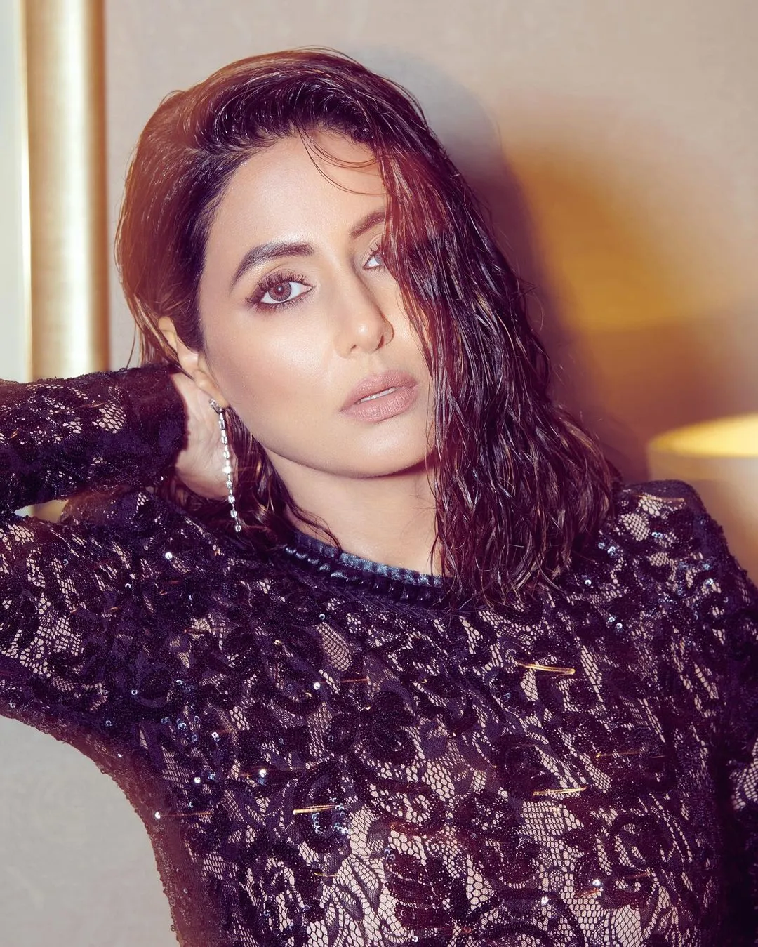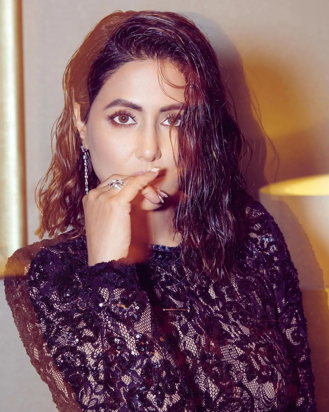 ऐसे में अब फिर से हिना ने फैंस के साथ अपने लेटेस्ट फोटोशूट की झलक शेयर की है। इन तस्वीरों में एक्ट्रेस को ब्लैक कलर के नेट वाले जंपसूट में देखा जा रहा है।