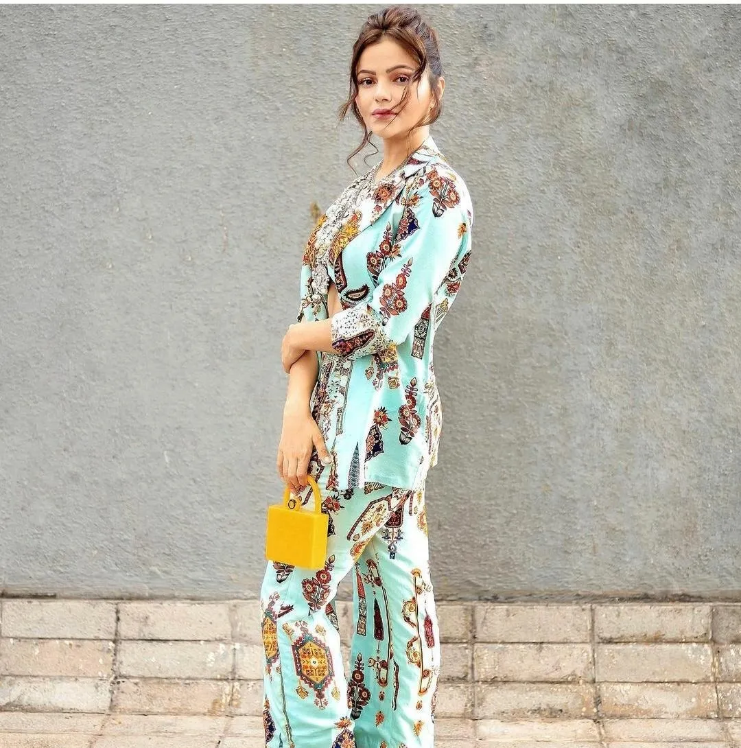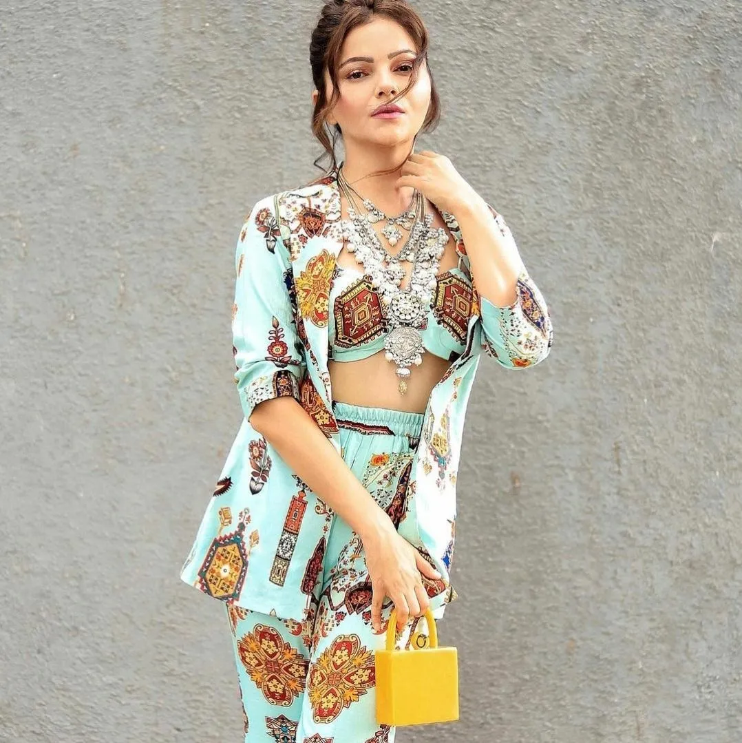 रुबीना ने हाल ही में इंस्टाग्राम पर अपनी कुछ फोटो शेयर की है, जिनमें उनका हॉट लुक देखने को मिल रहा है। इन फोटोज में एक्ट्रेस लाइट शेड की लूज पैंट, श्रग और ब्रालेट पहने दिख रही हैं।