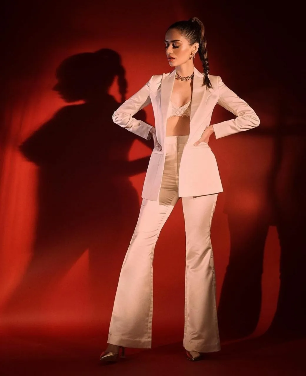 इन तस्वीरों में एक्ट्रेस व्हाइट कलर के पैंट सूट में बेहद गॉर्जियस दिख रही है। इसके साथ ही मानुषी अपने कोट के बटन खोलकर कातिलाना अंदाज में ब्रालेट फ्लॉन्ट कर रही हैं। मानुषी ने अपने लुक को पूरा करने के लिए गोल्ड ज्वेलरी और इयरिंग कैरी की है, जो उनके आउटफिट के साथ बिल्कुल परफेक्ट लग रही है।